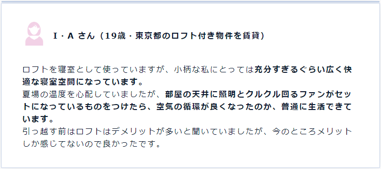 “對于身材嬌小的我來說,閣樓成為了足夠?qū)挸ㄊ孢m的臥室空間。夏天的溫度是有點(diǎn)擔(dān)心,如果在閣樓能安裝一套照明和空氣循環(huán)設(shè)備的話,正常生活就沒問題了。入住之前雖然聽說閣樓有很多缺點(diǎn),但現(xiàn)在更多的感覺到了優(yōu)點(diǎn)所在,所以現(xiàn)在住著很好。”
